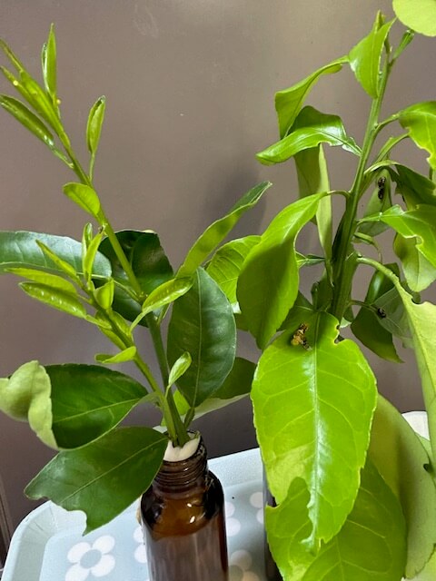 ベランダの柑橘に新芽がどんどん出ているのにもったいない、と思っていたところ。