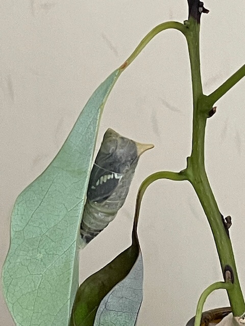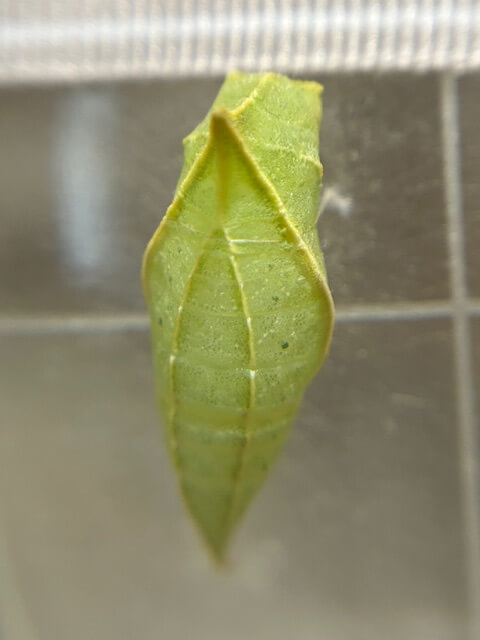 大抵の場合、羽化する前に葉っぱが枯れて丸まってしまうので、蛹は蛹ポケットに移します。