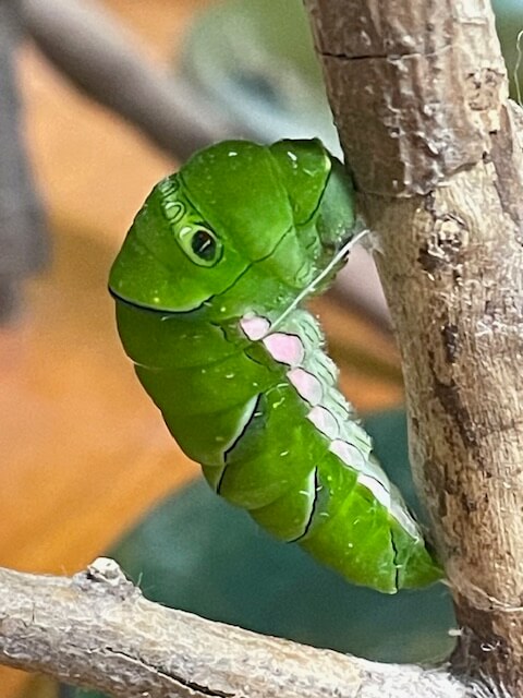 翌日見ると、すでに糸掛けは済んでいて、前蛹になっていました。