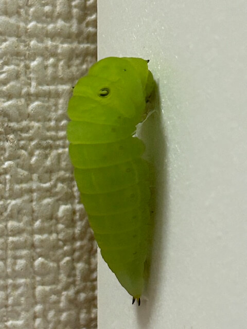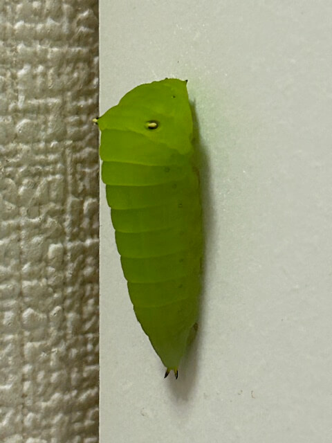アオスジアゲハの前蛹はナミアゲハのような“くの字”にはなりません。
