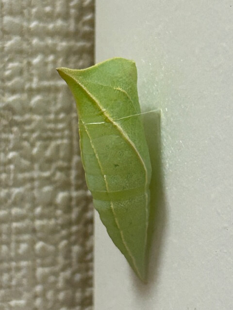 アオスジアゲハはどこで蛹になっても、ほぼこの色です。