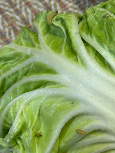 無農薬のハクサイに番外の虫を数匹発見。